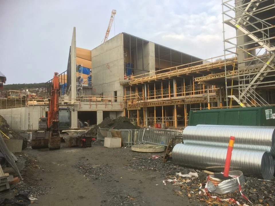 Arena Ulstein tek form med ferdigbetong frå Ulstein Betong AS. Fleire tusen kbm er levert sidan oppstarten hausten 2015. Enno står ein del att, men det som skal verte eit praktbygg viser etterkvart godt igjen i bybiletet.