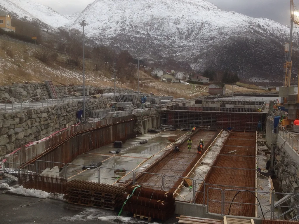 Berre få dagar etter sjøseting var det full produksjon igjen i dokka ved Ulstein Betongindustri AS. Ulstein Betong Marine AS produserer no 1 stk fôringsflåte, 2 stk flytemoloar og 1 stk. flytekai for sjøseting i midten av mars 2017. Forskalings- og armeringsarbeidet er godt i gong (armering av botnplater på flytemoloar nærmast på biletet).