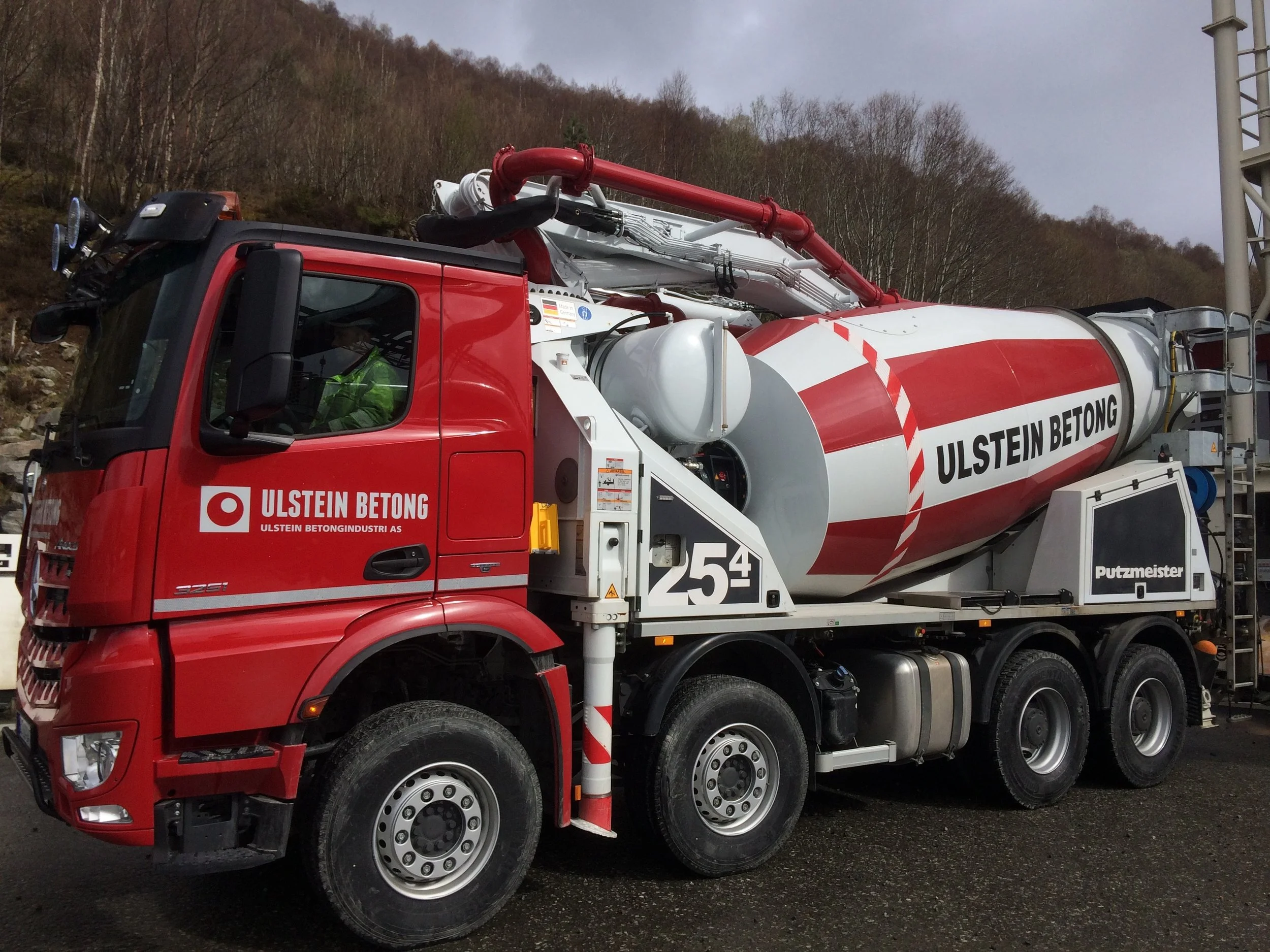 Ulstein Betong AS har investert i heilt ny pumpe-/trommelbil. Bilen er utstyrt med betongtrommel og Putzmeister betongpumpe med rekkevidde på ca 25 meter. Lastekapasiteten er 3-4 kbm. betong og bilen er lite plasskrevande samanlikna med andre betongpumpebilar. Ulstein Betong AS har no ein bilpark som inneheld 2 stk. betongpumpebilar, 2 stk. kombinasjonsbilar (trommel/pumpe) og 5 stk. betongtrommelbilar.